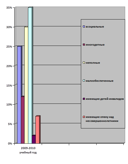 На 01.09.2009 года: семей обучающихся – 43, воспитанников ГКП - 17, обучающихся и воспитанников - 72.