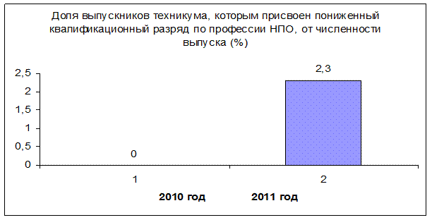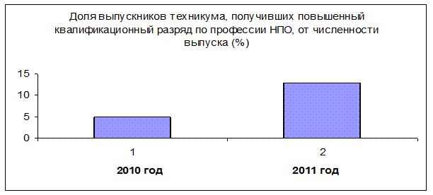 - увеличилась доля выпускников техникума, получивших повышенный квалификационный разряд по профессиям НПО и составляет 59% от численности выпуска,