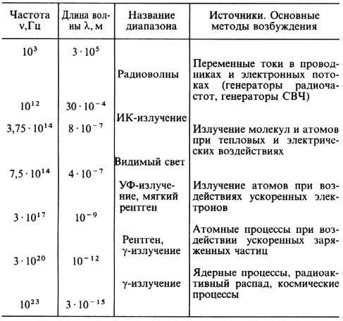 Теория Максвелла позволила установить, что радиоволны, свет, рентгеновское излучение и гамма-излучение представляют собой электромагнитные волны с различной длиной волны (табл1.), причём между соседними диапазонами шкалы Электромагнитных волн нет резких границ (рис1).