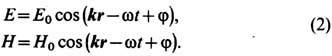 описывающим, в частности, распространение плоских монохроматических электромагнитных волн: