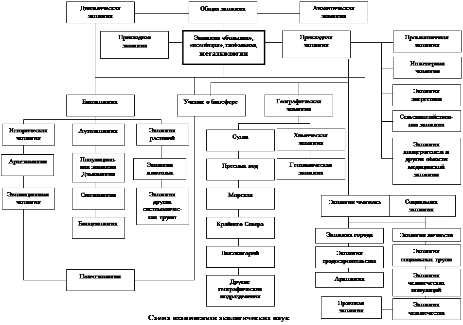 Для более полного восприятия существующей картины, внизу приведена примерная схема взаимосвязи наук, связанных с проблемами экологии и даны определения ряда из них.