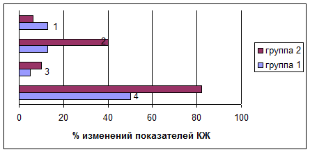 | Рис. 1 процент изменений составляющих КЖ в группах 1 и 2