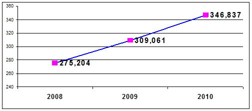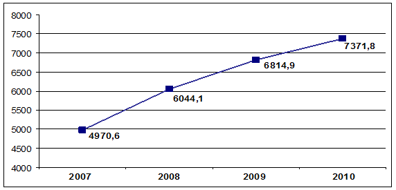 Средняя заработная плата, начисленная за 2010 год, составила 13155,7 рубля, т.е. по сравнению с 2009 годом увеличилась на 11,7%.