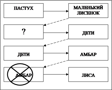 Анализируя предметную канву рассказа, дети замечают, что об одном и том же предмете говорится в двух соседних предложениях, а в схеме это фиксируется двумя одинаковыми картинками. Так дети подводятся к выводу о том, что именно за счет такого повтора предметов и осуществляется связь отдельных предложений в единое целое – рассказ.