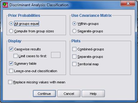 После задания необходимых условий дискриминантного анализа и нажатия кнопки OK