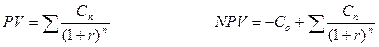 . Общая накопленная величина дисконтированных доходов (РV) и чистый приведенный эффект (NРV) соответственно рассчитываются по формулам: