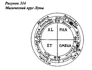 В среднем кругу необходимо написать: час операции, имя ангела часа, его печать, имена ангела и духов - служителей дня, имя времени, когда осуществляется операция, имена вызываемых духов (ангелов, гениев), имя господствующего знака, название земли по времени года, имена солнца и луны в эту эпоху.