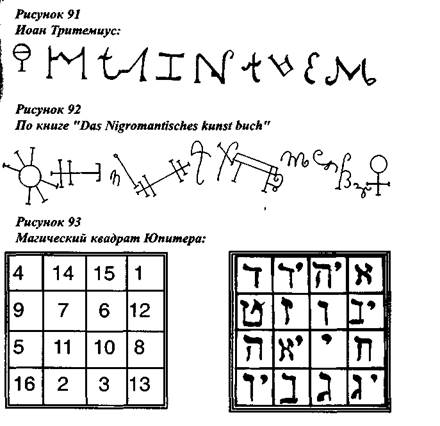 "Во первых заклинание посредством естественных вещей, во вторых - тайнами религии, таинствами, чудесами и тому подобное (изложенных в священных книгах), в третьих - силой боже-»ственных имен и священных знаков". Далее он уверяет что: "По-шощью таких влияний, мы не только завладеваем духами, но да|же и всеми существами природы, каковы бы они ни были: жи-рвотными, бурями, пожарами, наводнениями и военными силами"и далее "слепая вера в эти вещи имеет большое могущество для перенесения священного обряда на то, на что мы имеем намерение повлиять или чему воспрепятствовать".