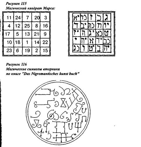 нами высшего Бога, создавшего сухую воду, названную им землей, на поверхности которой растут деревья и травы, и запечатлевшего ее своим святым драгоценным именем, обожаемым и грозным, и именами ангелов, командующих пятым легионом и служащих могущественному Асимои; именем звезды Марса, заклинаю тебя, о Самаель, ты, который председательствуешь во вторник, - всеми вышеперечисленными именами. Именем Адонай - бога живого и истинного - приди ко мне на помощь и исполни все мои желания".
