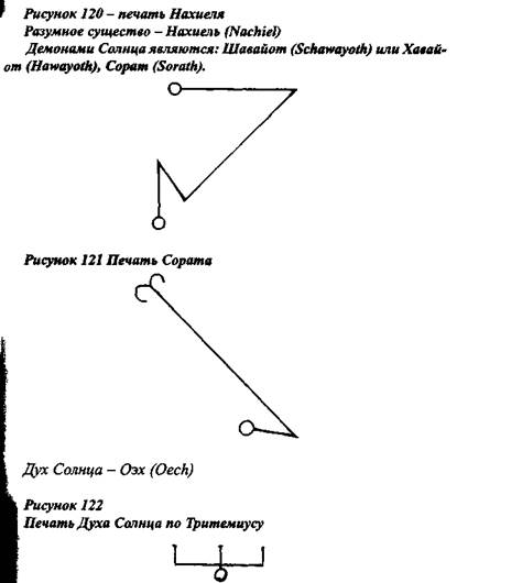 Знай также сын мой Ровоам, что все знаки, символы и имена (наиболее драгоценные и сокровенные вещи по происхождению, независимо от неба и земли) должны быть написаны тобой каждый отдельно на девственном пергаменте только освященными чернилами в начале Августа перед восходом солнца, обращая свои глаза к небу и обернувшись к востоку. Сохраняй их в специальной шкатулке, надевай их вдень и час в соответствии с их планетной принадлежностью и всегда обернувшись к востоку и ни какой враг или любая другая опасность не будет иметь силу чтобы повредить тебе.