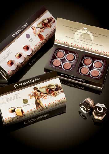 Комильфо – это шоколад в сегменте премиальных брендов, и чтобы выделиться среди конкурентов, а ведь комильфо пришел позже остальных на рынок, надо было создать неповторимый образ, подчеркивающий качество шоколада. Надпись на коробке: