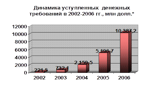 Однако, с тех пор объем российского рынка факторинга растет с темпом 100-300% в год. (рис.2)