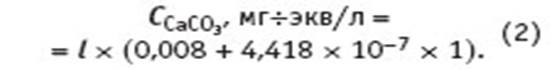 Аппроксимация (приблизительная запись) опубликованных в литературе данных приводит к экспериментальному уравнению:  Уравнение (2) применимо для расчета концентраций карбоната кальция в воде в диапазоне от 0,008 до 8,5 мг-экв/л. (9.стр 60) ДЭ-1 был откалиброван в среде 0,01 и 0,02 м КСl при 18 о
