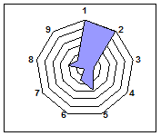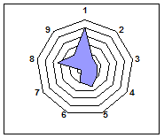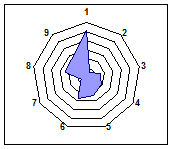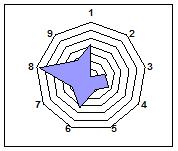 Для наглядности результаты экспериментальных исследований охарактеризованы лепестковыми диаграммами, которые комплексно отражают различия физико-химических показателей гуминовых кислот в зависимости от степени разложения и ботанического состава исходных торфов (рис. 9-17).