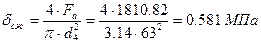 Напряжение смятия боковых граней шпонки, установленной на выходном участке вала: