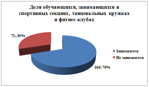 В школе составлен план проведения Дней здоровья, согласно которому еженедельно для отдельных параллелей проводятся классные часы, посвящённые профилактике вредных привычек, пропаганде здорового образа жизни, проводится школьная спартакиада, внеклассные мероприятия по физической культуре «Большие гонки» в 5-6 классах, «Праздник гимнастики» в 7-11 классах.