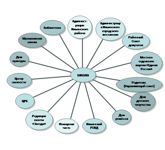 связи школы достаточно разнообразны, появилось больше возможностей для дальнейшего развития системы гражданско-патриотического воспитания и дополнительного образования. Созданы условия для организации профориентационной работы, досуга детей. Увеличилось число заинтересованных в качественном образовательном процессе.