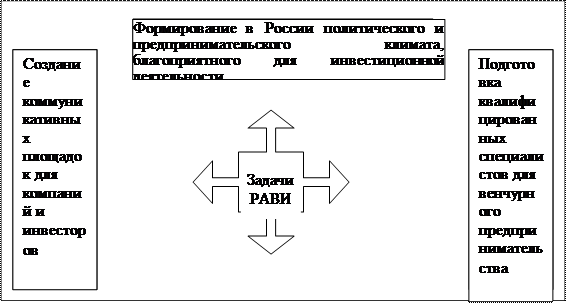 В марте 1997 г. пионеры венчурного бизнеса в России объединились в Российскую ассоциацию венчурного инвестирования (РАВИ). Появились сообщения о создании первых венчурных фондов, опирающихся на средства крупных российских банков и диверсифицированных холдингов.