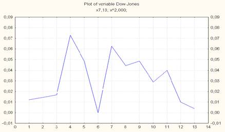 Рис.2 – временной ряд индекса Dow Jones Industrial в пакете STATISTICA 5.5
