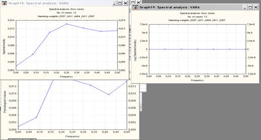 Рис. 3 – Всевозможные графики спектральной плотности индекса Dow Jones Industrial в пакете STATISTICA 5.5