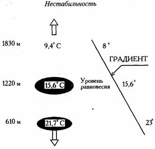 нею мы уже знакомы при выпаривании с холма или буксировке. Работают наземные ориентиры очагов и косвенные признаки потоков, которые мы рассматривали ранее. При прокладке маршрута обязательно следует пролетать над возможными очагами потоков. Опытный пилот никогда не пропустит прогретую пашню, ферму, или группу строений. Даже если вы немного отклонитесь от маршрута, набранная высота позволит продолжить полет и вернуться на линию маршрута.