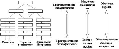 Рис.3. Формирование инвариантных репрезентаций при осязании, слуховом и зрительном восприятии