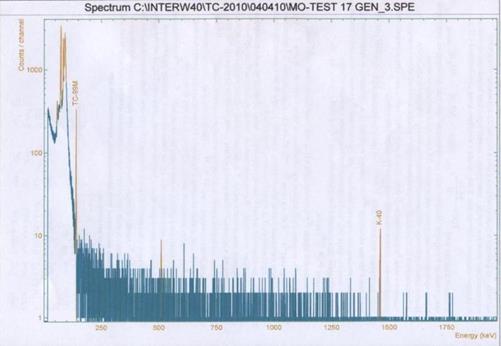 Измерения проводились по вышеописанной методике определения радионуклидных примесей в готовом препарате. На рис.7 изображен спектр одного из измеренных образцов «Раствор натрия пертехнетата 99