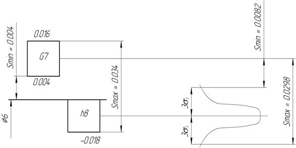 Поле допуска TS=TD+Td=0,012+0,018=0,030 мм