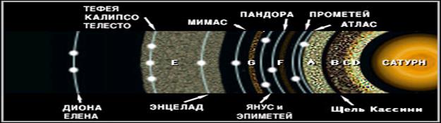 Планеты-гиганты отличаются большим числом спутников; у Юпитера к середине 2001 года их обнаружено уже 28, Сатурна - 30, Урана - 21 и только у Нептуна – 8, а уже к 1.08.2006г. у Юпитера найдено 63 спутника, у Сатурна – 55, у Урана 29,а у Нептуна-13. Замечательная особенность планет-гигантов - кольца, которые открыты не только у Сатурна, но и у Юпитера, Урана и Нептуна.
