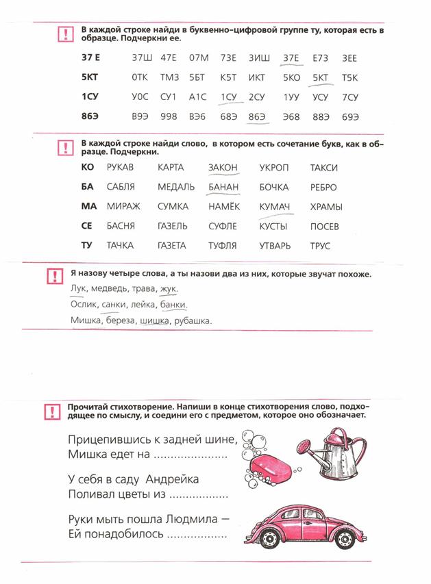 3). Зрительные диктанты (методика Зайцева).