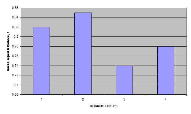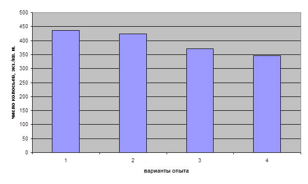 Лабораторную всхожесть семян устанавливали перед посевом, полевую всхожесть – через две недели после посева. Убирали урожай 16 августа 2003 г. При анализе структуры урожая определяли число растений на 1 кв. м, высоту растений, число продуктивных и непродуктивных побегов в кусте, число колосьев, их среднюю длину, число и массу зерен в колосе, массу 1000 зерен, урожайность (г/м2
