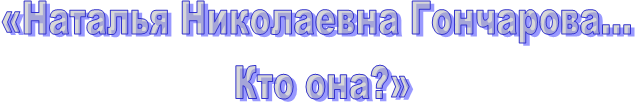 С портрета А.П.Брюллова загадочно смотрят на нас миндалевидные глаза черноволосой красавицы с жемчужными обнажёнными плечами и гибкой шеей. Это жена А.С.Пушкина. До последнего времени непроясненной фигурой, имеющей непосредственное отношение к биографии Пушкина, оставалась Н. Н. Гончарова, самый близкий ему человек. Её имя уже два столетия окружено легендами. Одни произносит его с горечью и упрёком, другие же - с любовью и уважением. Уже второе столетие люди задают один и то же вопрос: «Кто же она, Наталья Гончарова? Светлая ли барышня, прекрасная и глупая, как цветок прекрасных оранжерей? Хищница ли, выпускающая острые коготки из бархатных лапок? Царственно ли равнодушная красавица балов в Аничковом дворце или оклеветанная светским кругом «Мадонна», трогательно ухаживающая за смертельно раненым мужем?» Чтобы ответить на все эти вопросы, я решила изучить литературу по данной теме и провести исследование.