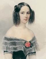 «Это очень стройная, высокая – лицо Мадонны, чрезвычайно бледное, с кротким, застенчивым и меланхолическим выражением,- глаза зеленовато-карие, светлые и прозрачные. Взгляд не то чтобы косящий, но неопределённый, тонкие черты, красивые чёрные волосы». Графини Д.Ф. Фикельман, внучка Кутузова