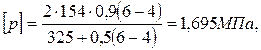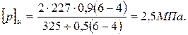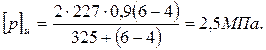 Допускаемое внутреннее давление для обечайки с s =6 мм определяется по формуле [2]: