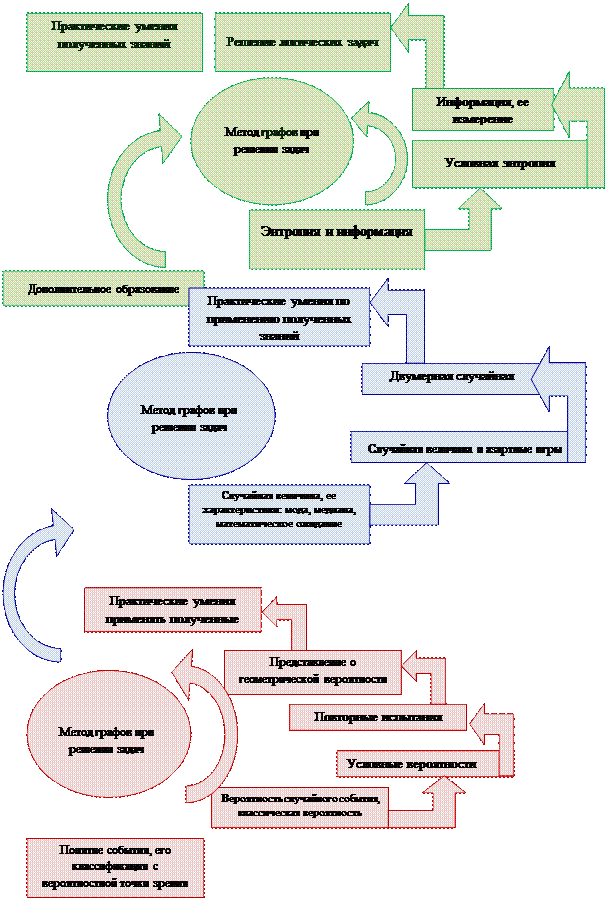 К другим учебно-методическим комплексам таких пособий пока не разработано. Выход для учителя – практика из создавшейся ситуации заключается в авторской разработке рабочей программы, элективного курса с учетом всех возникших противоречий по введению стохастической линии в курс средней школы и предлагаемых путей их разрешения.