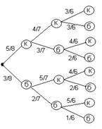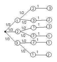 · Трое игроков по очереди извлекают по одному шару из урны, содержащей 5 белых и 3 черных шара. Побеждает тот, кто первый извлечет белый шар. В каком отношении находятся шансы спорящих?