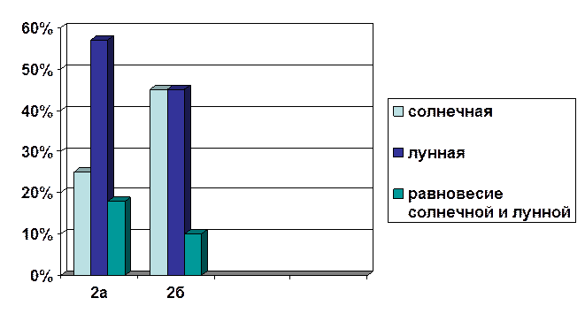 4. провести опрос среди учащихся 2А и 2Б классов и определить, какой вид энергии (энергии Солнца или энергии Луны) преобладает в них;
