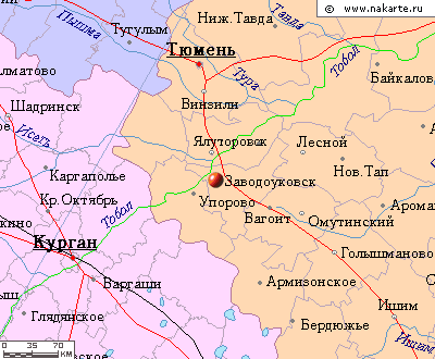 Рис.1.1. Расположение г. Заводоуковска относительно близлежащих городов