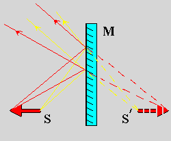 расположенной за зеркалом симметрично точке S.