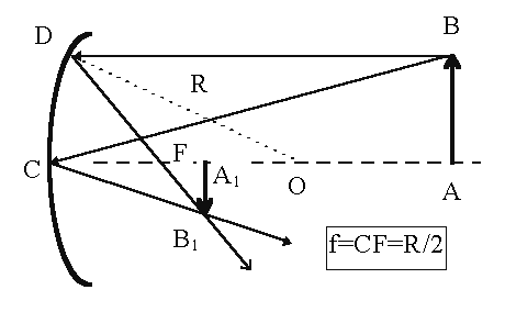 Рис. 3. Построение изображения в вогнутом сферическом зеркале