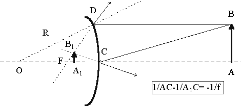 Рис. 4. Построение изображения в выпуклом сферическом зеркале