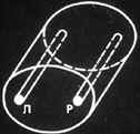 При конструировании лазеров рубиновый стержень P и лампу оптической накачки располагают в фокусах зеркального оптического цилиндра. А этом случае свет, излученный лампой Л, весь попадет на стержень Р.