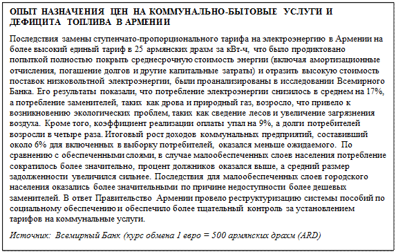 Lampietti, Julian A. et al , “Utility Pricing and the Poor: Lessons from Armenia”, Background paper for second ECA Poverty Forum, Budapest, 27-30 November 2001