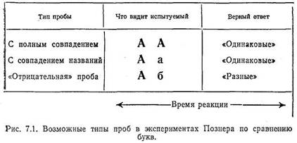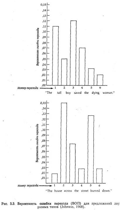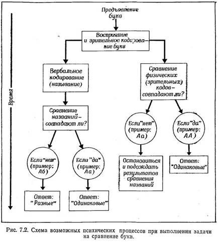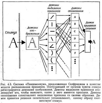 Рассмотрим сначала первое из этих предположений. Мы "исходим из того, что зучаемыи процесс — переработку некоторой информации — можно разбить на ряд подпроцессов или этапов. Иными словами, промежуток между стимулом и реакцией можно разделить на более короткие интервалы, каждый из которых, соответствует какой-то подгруппе промежуточных событий. Как мы увидим, информация при переходе от одного этапа к другому может подвергаться удивительным преобразованиям. Возвращаясь к нашему примеру с красным светом, мы можем разбить весь процесс на следующие этапы: во-первых, наша зрительная система регистрирует красный свет; во-вторых, мы распознаем данное зрительное ощущение как то, что оно представляет собой на самом деле, — как красный свет светофора (для этого мы должны использовать информацию, хранящуюся в нашей памяти, т. е. знание того, как выглядит красный сигнал светофора); в-третьих, мы применяем правило, котрое хранится у нас в памяти: "Увидев красный сигнал, останови машину". Конечно, весь этот процесс при желании можно подвергнуть дальнейшему дроблению. Но обратите внимание на то, что на описанных этапах первоначальная информация (зрительный: сигнал) подверглась последовательным преобразованиям. Из зрительного ощущения она превратилась в распознаваемую категорию (восприятие красного света), после чего вновь изменилась, превратившись в условие, требующее применения определенного правила (останови машину, когда...). Этот пример иллюстрирует, общее положение: выделение того или иного этапа в процессе переработки информации не должно бйт произвольным: каждый этап этого процесса (называемый "иногда уровнем переработки) обычно соответствут тому или иному представлению информации, которую несет данный стимул. При переходе информации от одного этапа к другому соответственно изменяется и ее представление.