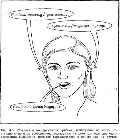 Пример с красным светом можно рассмотреть и с точки зрения информационной емкости системы. Цля каждого этапа можно установить "известные пределы способности человека к переработке информации. Если, например, добавить к красному свету регулировщика уличного движения, нескольких беспечных пешеходов и машину скорой помощи, то всех этих стимулов может оказаться слишом много для того, чтобы зрительная система была способна зарегистрировать их в одно и то же время. В результате возникнет перегрузка сенсорного регистра, а такого рода перегрузки могут приводить к различным осложнениям. Прежде всего часть информации может не поступить в систему (может случиться, что мы вообще не заметим одного из пешеходов или даже красный свет). Или же мы могли бы перекодировать стимульную ситуацию, т. е. преобразовать ее в некоторый новый стимул (например, воспринять ее просто как "опасную ситуацию"). Наконец, возможна также более избирательная переработка информации-мы могли бы направить все свое внимание на регулировщика, не замечая ни сигнала светофора, ни пешеходов, ни машины скорой помощи.
