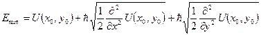 Формула (3) формируется следующим образом: первое слагаемое – значение потенциала в точке минимума, в двух других выражения под корнем – «частота» двух перпендикулярных осцилляторных потенциалов, которыми можно аппроксимировать поведение суммарного потенциала в точке минимума. В целом два последних слагаемых – выражение для минимальной энергии осциллятора . Этот параметр является достаточно важным – он определяет, кроме вышеуказанного, в спорных случаях возможность резонансной диффузии в целом. Резонансная диффузия возможна, если только (3) меньше высоты барьера.
