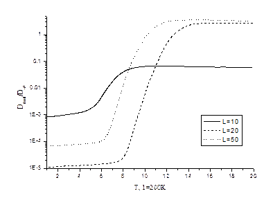 Из рисунка видно, что существует некоторое критическое значение , находящееся между 10 и 20 единицами, выше которого можно наблюдать молекулярную резонансную диффузию, сравнимую по величине с атомарной. При значениях выше этого значения поведение кривой меняется не столь существенно.
