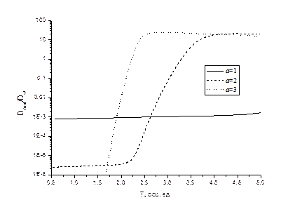 Рисунок 4 - Отношение молекулярной и атомарной диффузии при параметрах , и различных