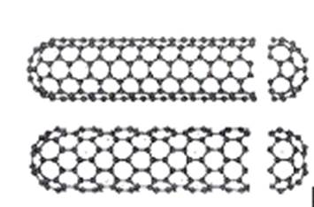 “Углеродные нанотрубки — протяжённые цилиндрические структуры диаметром от одного до нескольких десятков нанометров и длиной до нескольких сантиметров состоят из одной или нескольких свёрнутых в трубку гексагональных гафитовых плоскостей (графенов) и заканчиваются обычно полусферической головкой. “[2]