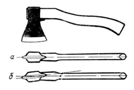 Рис. 5. Насадка топора: а — правильно; б — неправильно